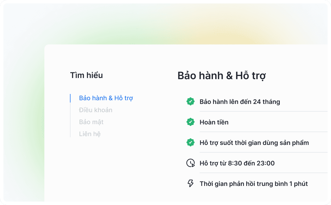 Khách hàng luôn được hỗ trợ và tư vấn cài đặt, sử dụng trong suốt thời gian sử dụng sản phẩm.